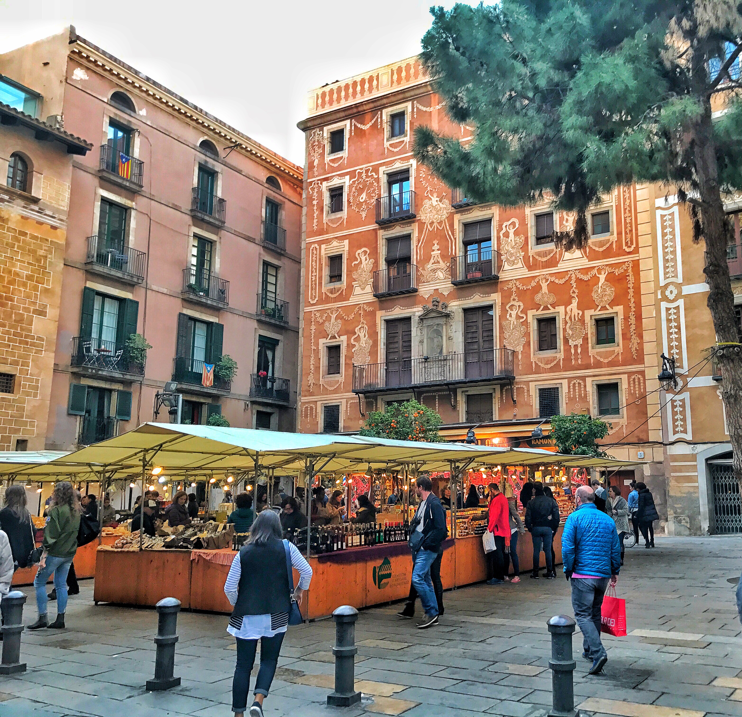 Plaça del Pi: this charming square hosts a weekend art market showcasing local artists, as well as an artisan food market on the first and third Friday and Saturday of the month offering handmade products including honey, fuet (Catalan saucisson) chocolate, nougat, chocolate and wine. Off to one side stands the Gothic church Santa Maria del Pi, with its magnificent rose stained glass window, a reproduction of the original that was destroyed in a fire in 1936.