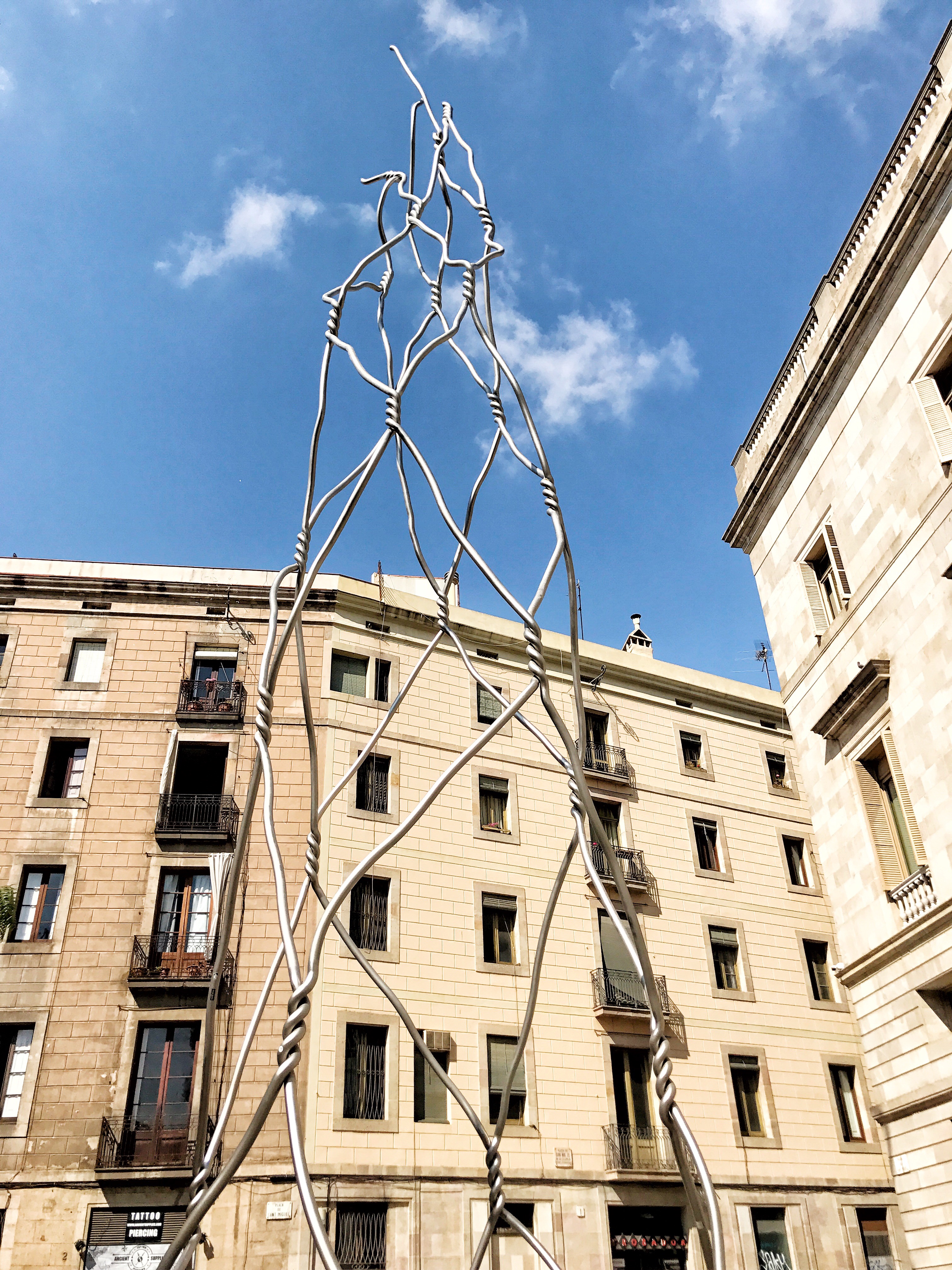 Plaça de Sant Miquel: just behind the Plaça de Sant Jaume – the political heart of Barcelona where both the City Hall (Casa de la Ciutat) and the Catalan government palace (Palau de la Generalitat) are located – is a 26.5 metre tall stainless steel sculpture dedicated to Castellers, the people who often risk their lives to demonstrate the strength and unity of the Catalan people by forming human towers.